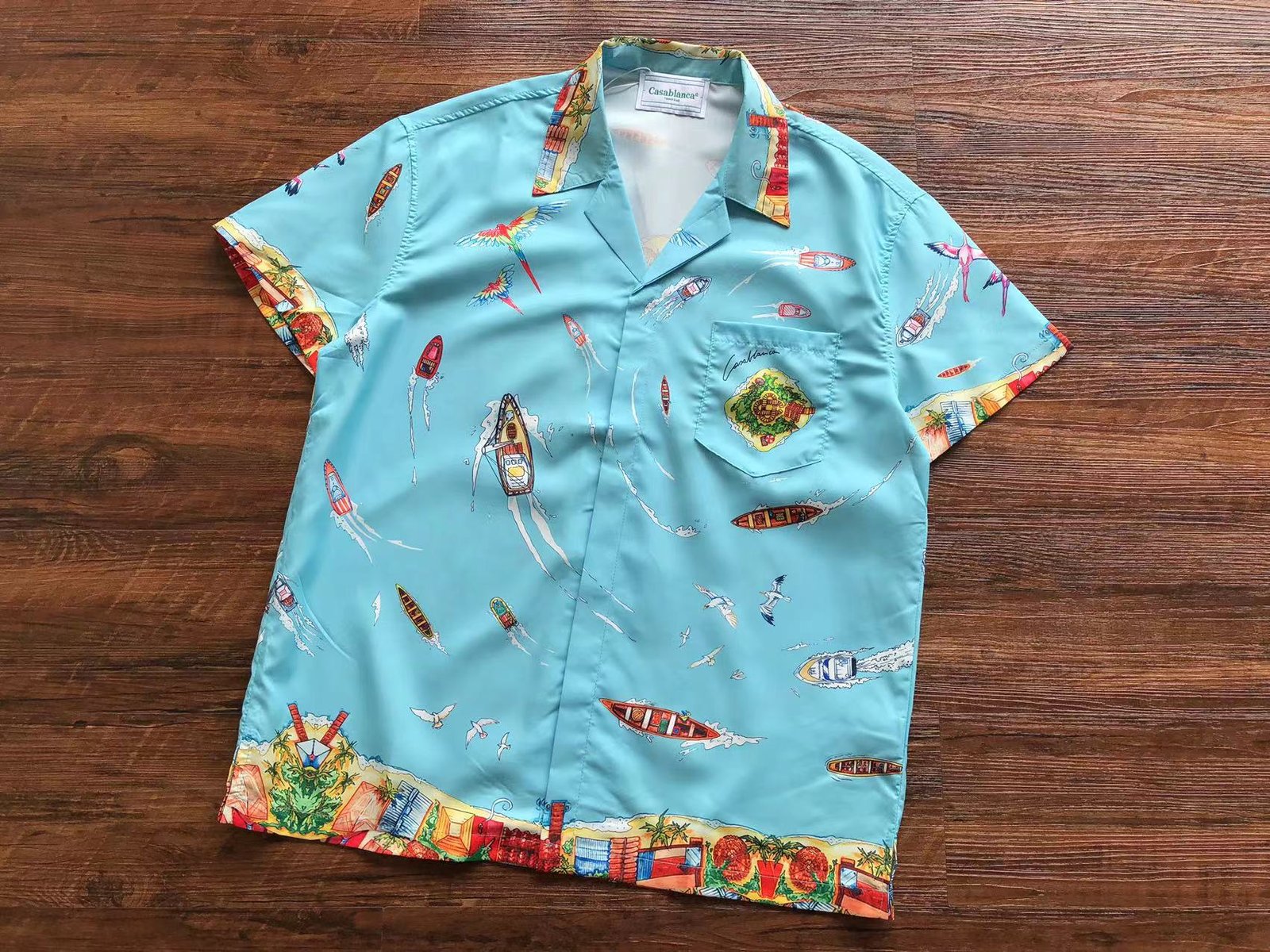 Criada em 2018 pelo franco-marroquino Charaf Tajer, Casablanca se inspira em um destino a cada temporada, já tendo homenageado Mônaco, Havaí e o Rio de Janeiro. O estilista diz que se a Casablanca pudesse ser associada a um esporte, seria ao tênis, e na música, à bossa-nova e à MPB.