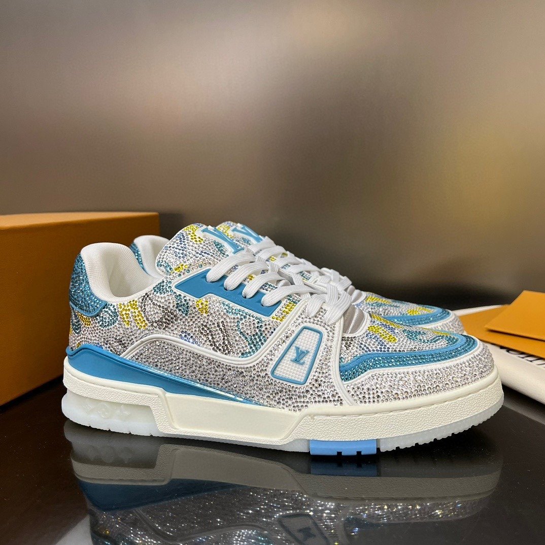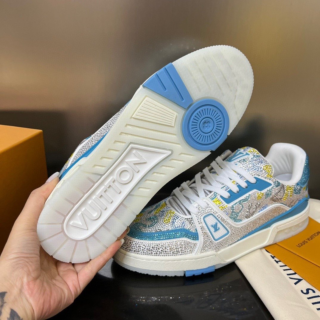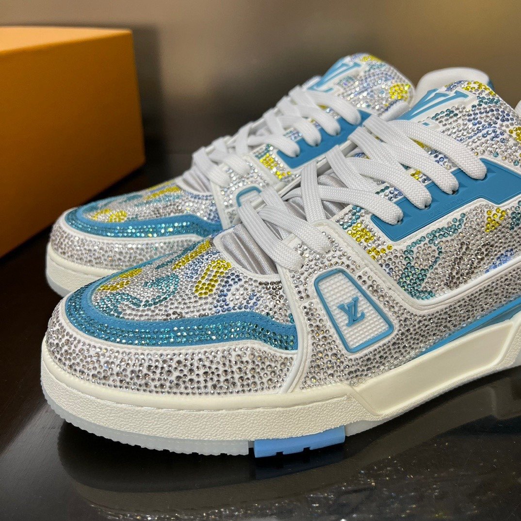 Esta versão excepcional do tênis LV Trainer é coberta de cristais Swarovski™. Um ícone da coleção de sapatos da Louis Vuitton, esse modelo foi desenhado originalmente por Virgil Abloh, que se inspirou nos tênis de basquete vintage. O design é complementado por detalhes emborrachados, incluindo LV Initials e a assinatura Vuitton na lateral.