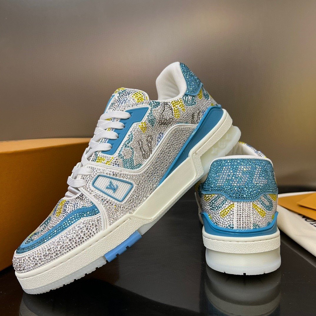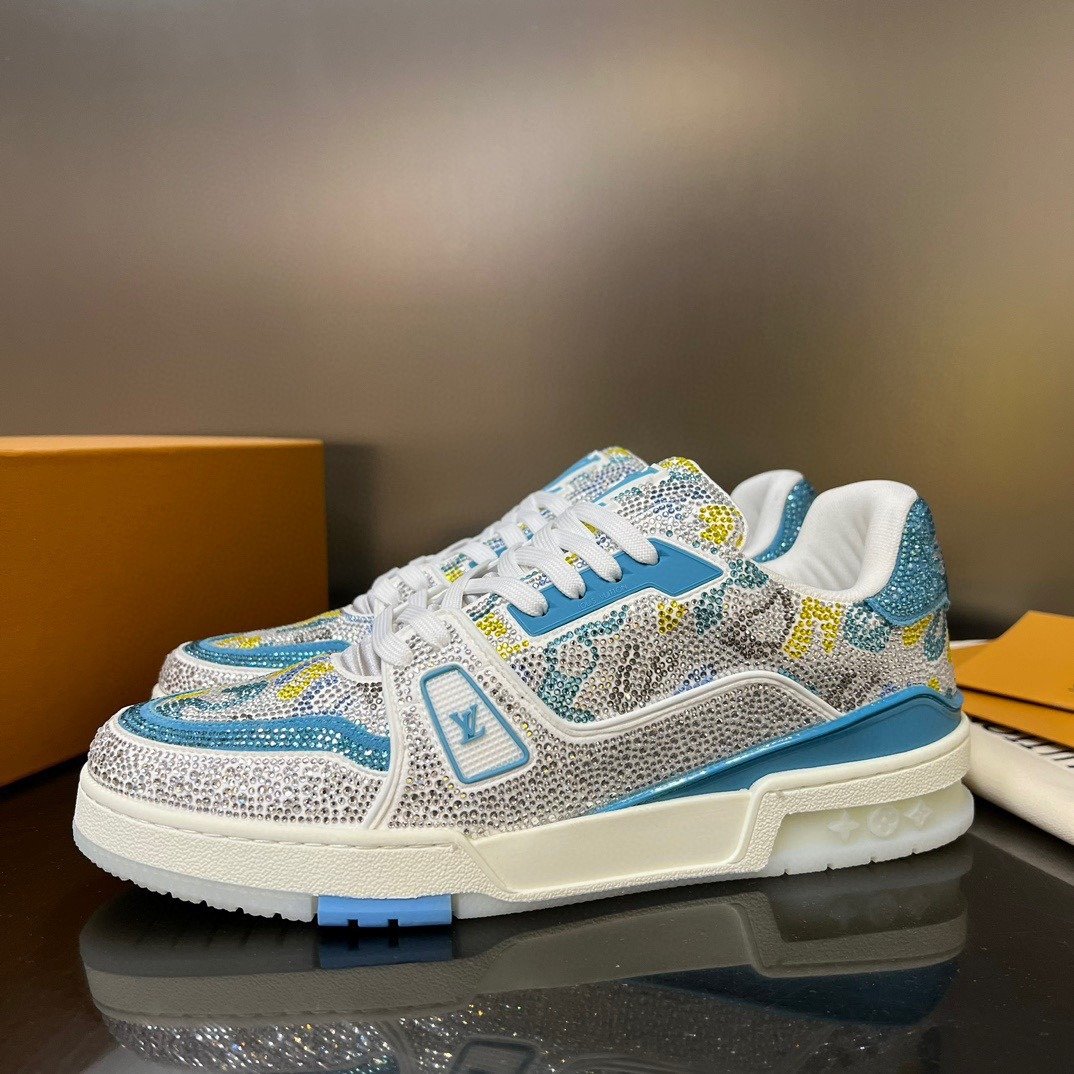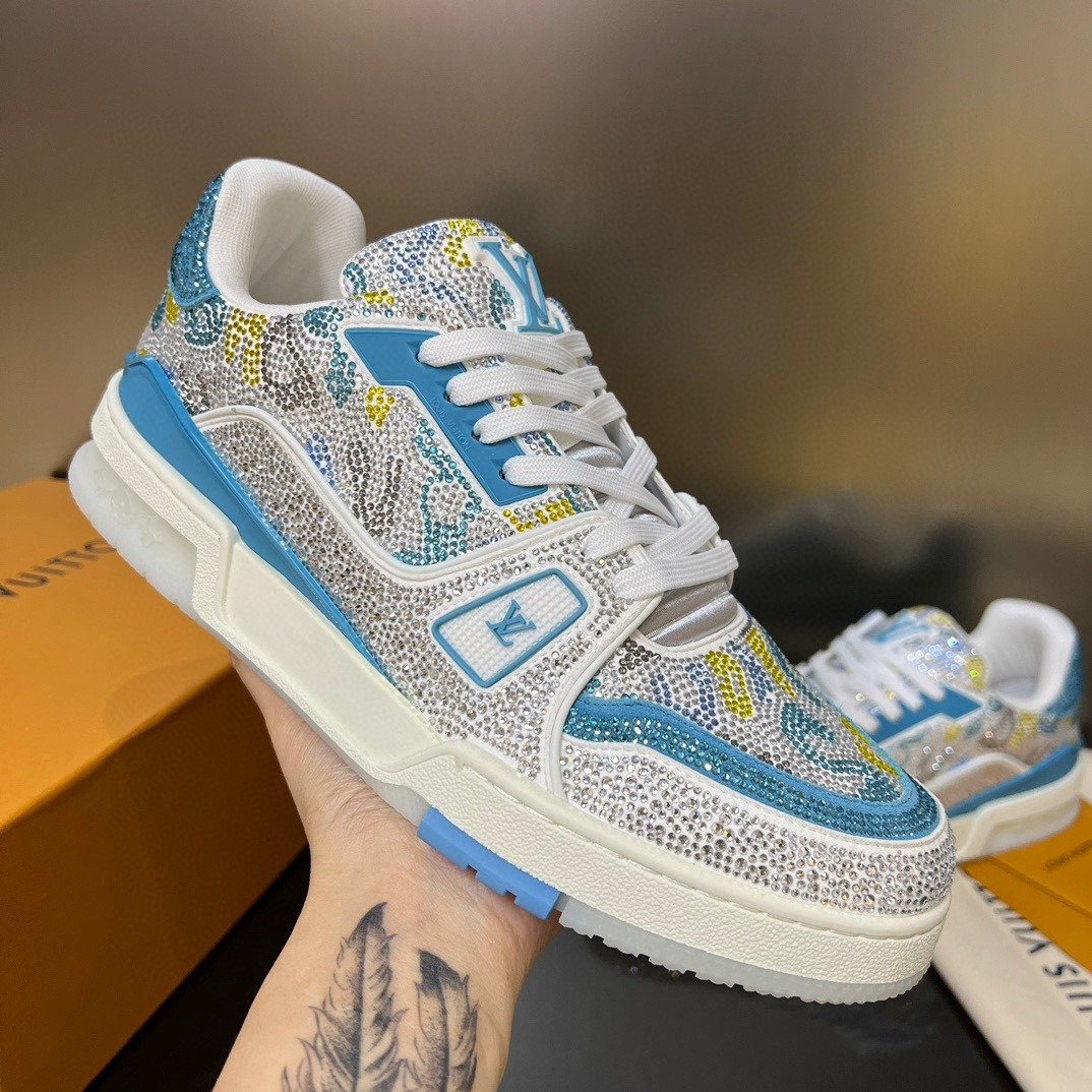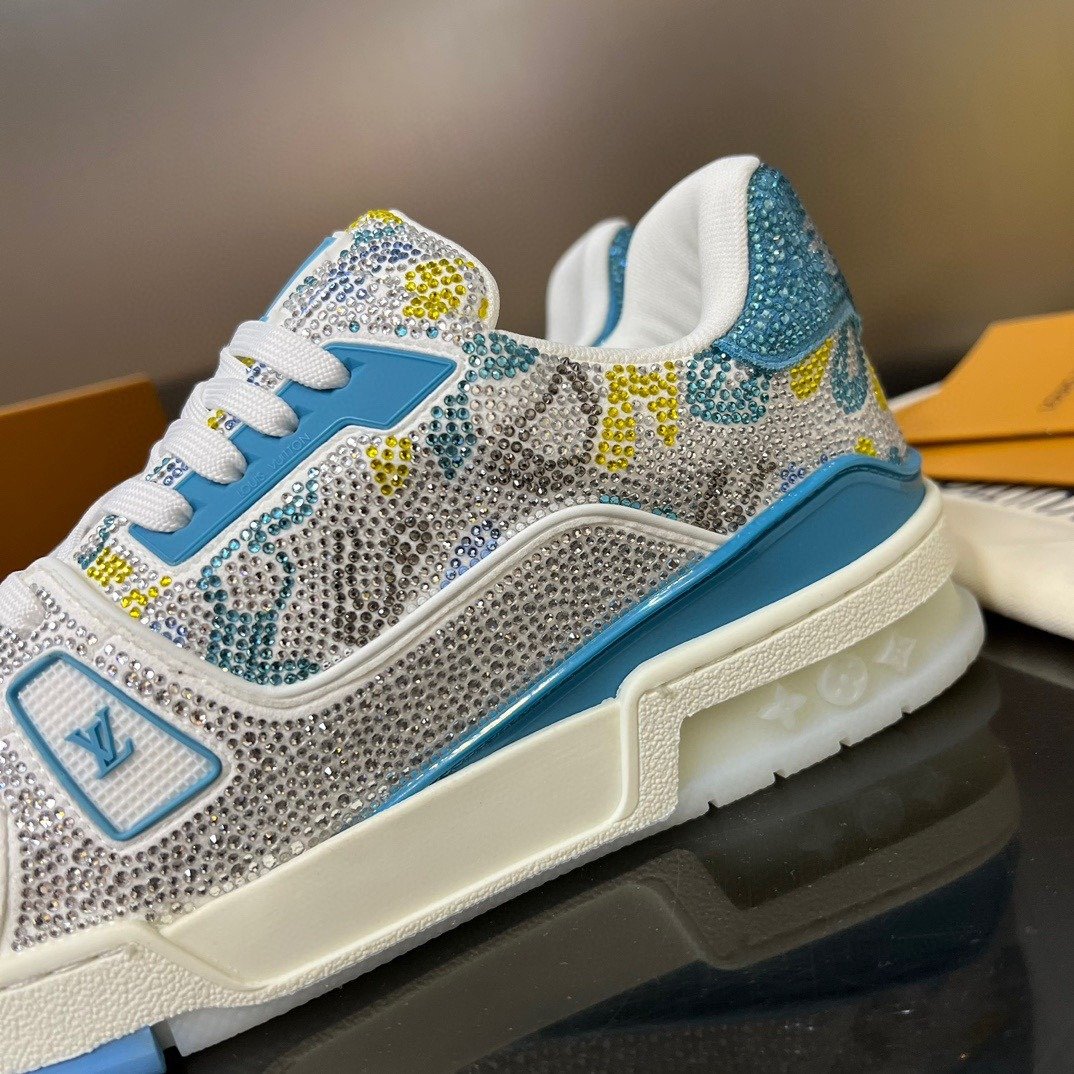 Esta versão excepcional do tênis LV Trainer é coberta de cristais Swarovski™. Um ícone da coleção de sapatos da Louis Vuitton, esse modelo foi desenhado originalmente por Virgil Abloh, que se inspirou nos tênis de basquete vintage. O design é complementado por detalhes emborrachados, incluindo LV Initials e a assinatura Vuitton na lateral.