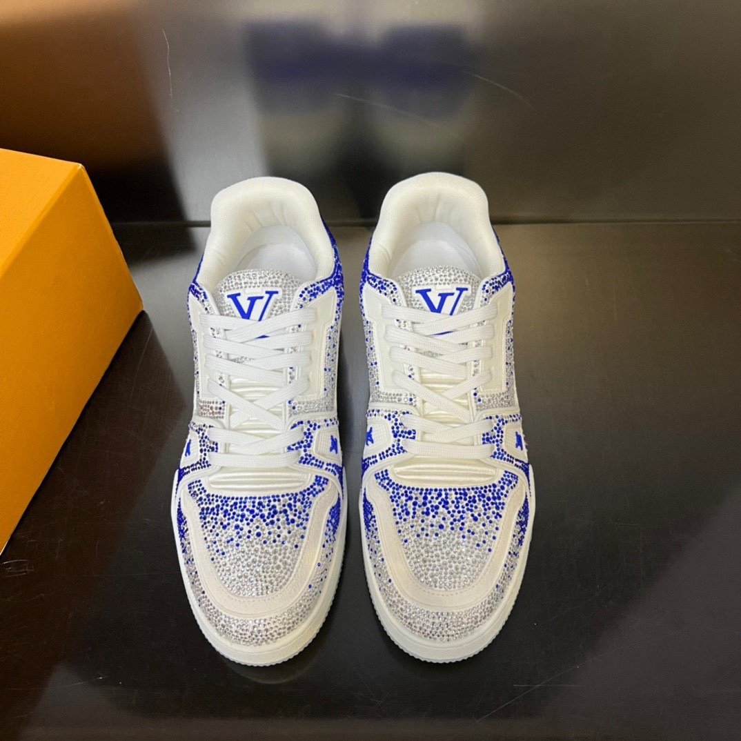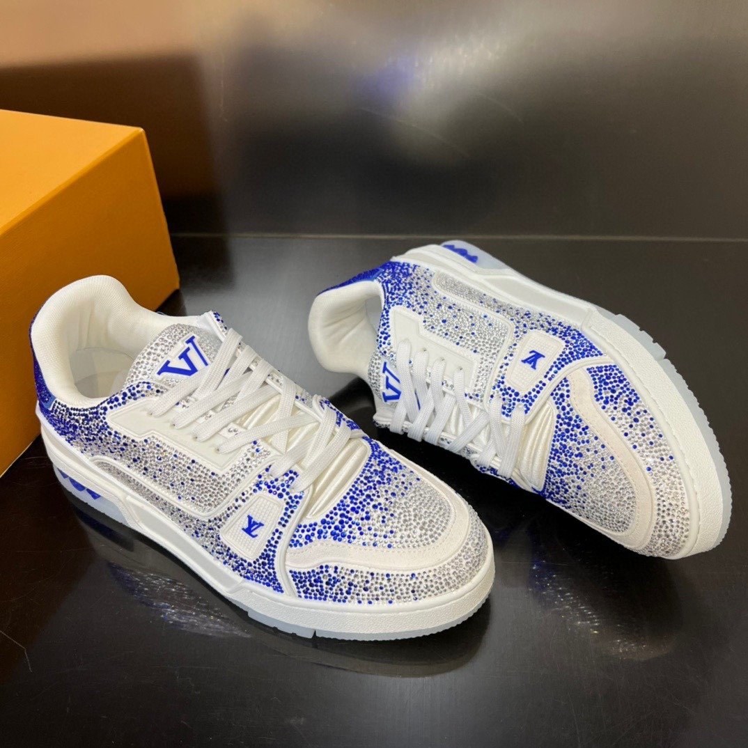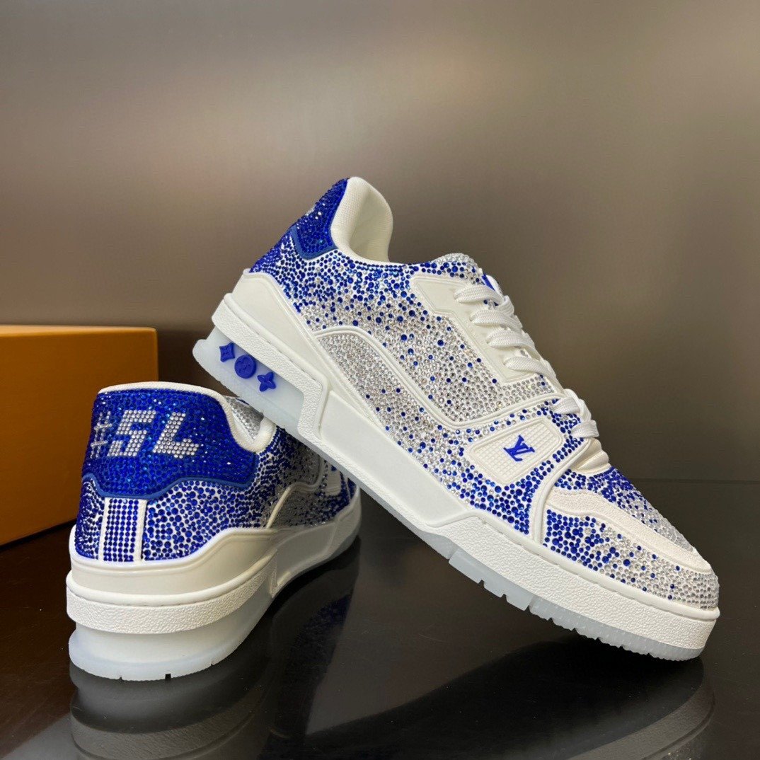 Esta versão excepcional do tênis LV Trainer é coberta de cristais Swarovski™. Um ícone da coleção de sapatos da Louis Vuitton, esse modelo foi desenhado originalmente por Virgil Abloh, que se inspirou nos tênis de basquete vintage. O design é complementado por detalhes emborrachados, incluindo LV Initials e a assinatura Vuitton na lateral.